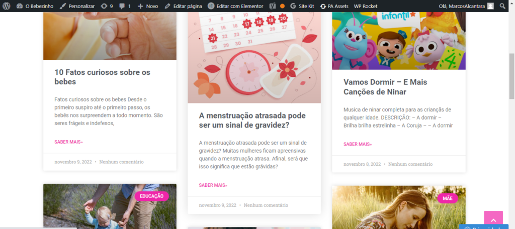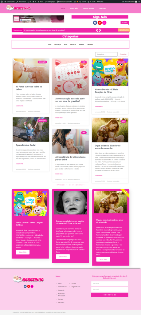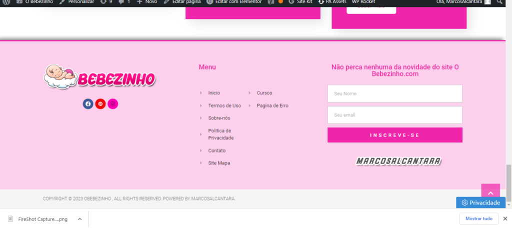 Feito em WordPress e Elementor
